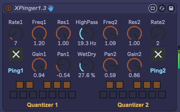 | Description: | XPinger features two Moog Ladder filter emulations pinging each-other continuously to produce chaos, melodies, and beats. Ladder filter emulation used: https://cycling74.com/tools/pm-ladder-moog-ladder-filter Update1.3: removed pinging feedback issue with multiple instances Update1.2: Removed ping from final signal, added quantizer Update1.1: DC offset fixed and now works as an effect. if you like this plugin, please donate: https://www.paypal.com/donate?hosted_button_id=GRN7X2DQQQVCW |