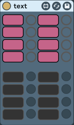 | Description: | Text is a send/receive solution for passing bang messages back and forth between m4l devices. This patch contains 8 sends and 8 receivers that developers can copy and paste into their own devices. It would be so cool if more devices could communicate with each other. Any build, simple or complex, would expand the functionality of all the others that are send/receive enabled. If you make or have an idea for something cool, post it in the comments! In the future this may be modified to send other messages and signals as well. |