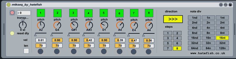 | Description: | >>N E W 2.5 AVAILABLE N O W << >>HERE: http://www.maxforlive.com/library/device.php?id=676<< The mtk (meet the knobbers) sequencer is a simple 8 steps sequencer at its maximum magnificence. I hope it will help you in finding inspiration as much it did with me. enjoy it and don't forget to visit: http://www.facebook.com/pages/meet-the-knobbers/157893047607981 see you there version 2 ... few tweaks !!! |