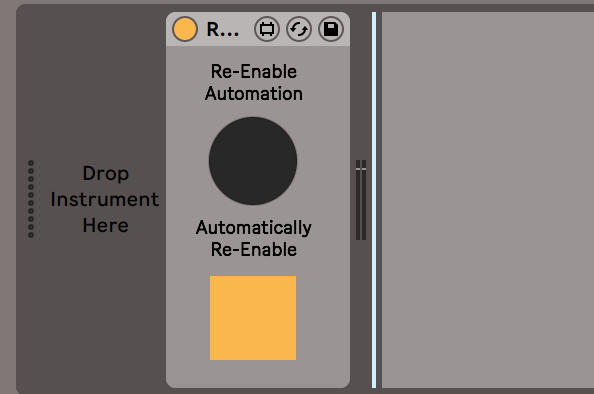 Description: Automatically re-enable your Ableton automation! Never worry again about that infuriating orange arrow, your automation will never be over-ridden again. Just click the toggle or automate the button wherever you like!