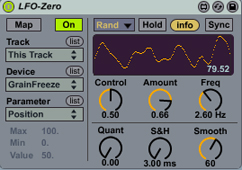 | Description: | LFO Zero is my general purpose LFO. Features include sample and hold of waveforms, a smoothing algorithm, and - new sine may 2011 - a songtime synced reset function. LFO One is the modulation of the modulation machine: Up to three oscillators can modulate each other to create very complex waves, some kind of modular LFO synth. Note: Uploaded by Clint/synnack with Monolake's permission via email. |