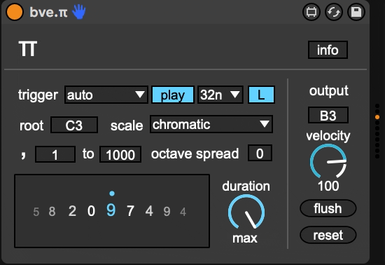 | Description: | bve.π is a sequencer that uses the first 1000 decimals of the number π to trigger MIDI notes |