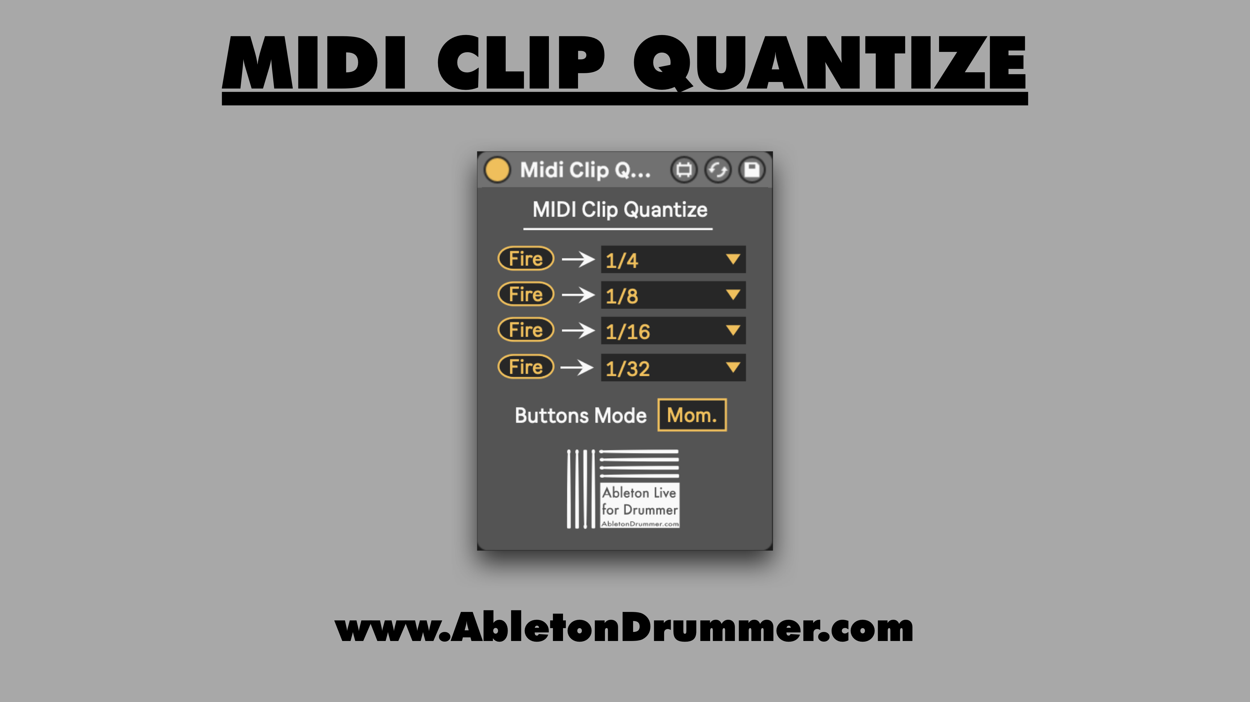 | Description: | Via this Max for Live device you can quantize all MIDI notes start points of the currently selected MIDI clip in Ableton Live's Session View - just one selected MIDI clip would work! This becomes handy if you record some MIDI live in a live performance and quickly want to quantize the just recorded clip to a certain value e.g. by having several buttons mapped to several buttons each ‘firing’ a different quantization. This device needs to be placed on the track the addressed MIDI clip is on. |