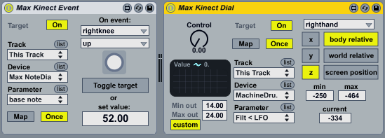 fantastic. it's working really well for me. I just have a little question, on the kinct dial: what are the "min out" and "max out" values really doing? I thought that this allows to set a range on the targeted parameter, but to me the behaviour seems to be inconsistent. Can you give me a hint?