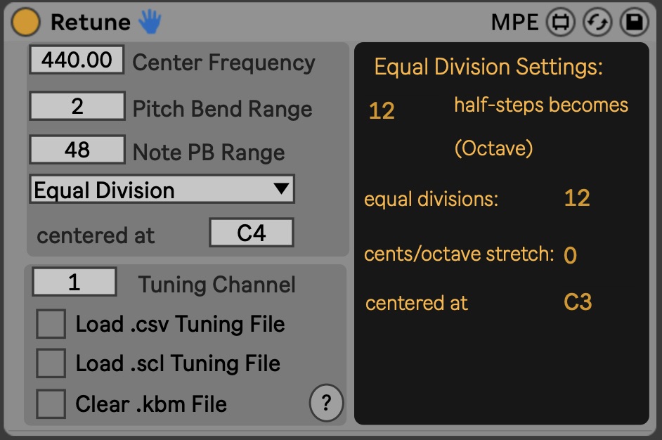 | Description: | Retune (MPE version) FREE !!! Only supports Ableton 11 !!! Original patch & script by Ursin(e) MPE update by Harald Bjørn Upload your own tuning files to Ableton or play with pre-made tuning systems. This is a Polyphonic MIDI Retuning System for Live. Support Live Instruments or plugins that uses MPE. - Five tuning systems are currently featured: Equal Division, Just Intonation, Pythagorean, Quarter Tone, and Bohlen-Pierce - Supports two tuning file formats - the Scala scale (.scl) + mapping (.kbm) file standard as well as a custom formatted .csv file - Up to 15 voice polyphony !New! - No transmitter/receiver connections needed. Just plug & play! - No maximum amount of Retune objects. - A more simple interface with fixed bugs. - Presets have a description of the tuning system used. - Use MPE note pitch bends at the same time as Retune is enabled. Note that the standard note PB-range in Ableton's MPE devices (Simpler, Sampler, Wavetable) is 48, other MPE compatible instruments might have another range, so please check that if you want the patch to work correctly. If you find any bugs or have any ideas that could make a better patch please send an email at richxit@fantasyforever.eu. |