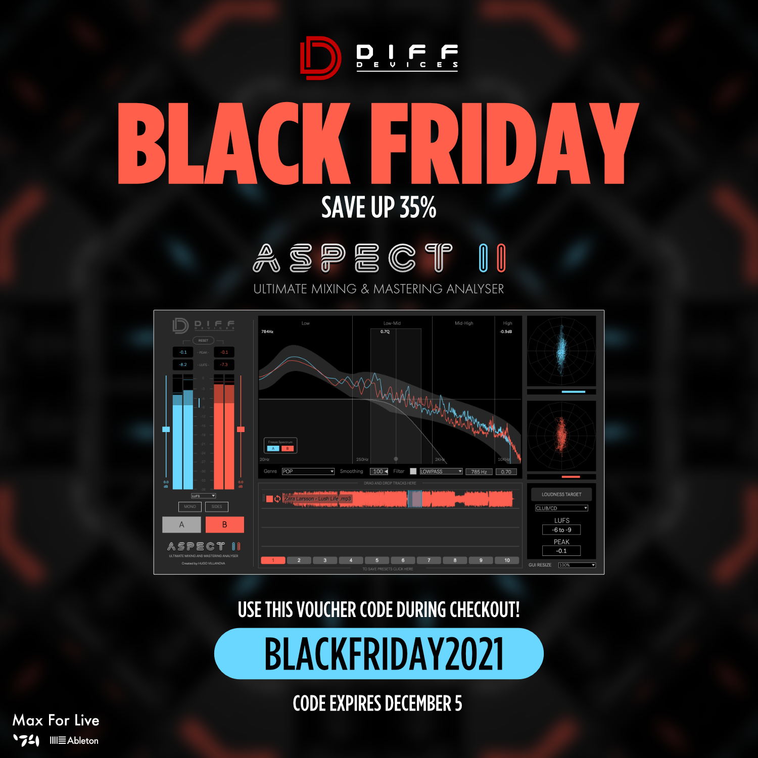 | Description: | ASPECT II enables you to compare your mix to other mixes with a simple click of the A-B button inside Ableton Live. It is designed to provide you with an easy, elegant workflow. From drag and drop file loading (you can even drop multiple reference tracks in one go), loop functions, multiple analysis (spectrum, correlation, stereo pan) to industry compliant loudness and dynamics metering. The trick with using reference files is to be able to instantly hear the contrast and differences between your mix and the kinds of sounds you aspire to. Adding visual feedback from multiple analyses types gives you the visual confirmation of the audio information you are hearing. In environments where listening facilities are less than ideal, itʼs even more important to be able to do visual checks to ensure the sound is really there. Using both audio and visual information provides you with the feedback you need to make better decisions on what to do with your mix to get the best possible results. When you are armed with this level of precision and detail, it empowers you to move forward with confidence, knowing that each creative decision is backed by undeniable evidence. Features in Version 2.0 : - Lufs / Peak Meter Values - Volume Gain A/B - Visual Meters Lufs / Peak - Ruler Picker (Lufs/Peak) - Listen Mono or Side Signal - Listen A/B for Comparison - Drag and Drop Reference Tracks - Loop Section in a Reference Track - Loop Active On/Off - Spectrum Curve for A/B - Genres for Target Curves (up to 11 Different music Genres) - Target Curve Display - Freeze Spectrum A/B - Frequency Display - Filter Isolation A/B (Low Pass, High Pass & Band Pass) - Goniometers A/B - Loudness Targets (Up to 8) - Loudness Targets on Metering - Save Playlists of Your Reference Tracks - Resizable User Interface. *It Requires Ableton Live with Max Installed. *Ableton Live 10 Minimum Check Youtube Video: https://www.youtube.com/watch?v=AsRv_isLUOQ |