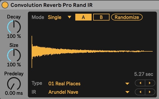 | Description: | A simple update of stock Convolution Reverb Pro with a button than randomly picks an IR from the stock list. 1.1: Updated for Live 12, fixed Apple Silicon compatibility. |