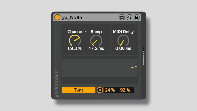 | Description: | Random modulation, per note, by chance ya_NoRa allows you to randomize any Live parameter with incoming MIDI notes. Set the % chance by which the modulation will be triggered, set a ramp with which it will reach the new random value within range … |