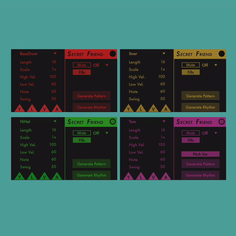 | Description: | During my Eternal Quest to turn the digitone into the perfect drum machine i have created “Secret Friend” which is a drum pattern generator. The idea is to pair it with “Temporarium Secretarium” (my digitone drum patch generator) and to generate drum kits and patterns quickly. simply drop the midi device on a midi track, select the sequence type you wanna generate, set the midi note, length, scale, etc, hit “Generate Pattern” and send it to the digitone (set the appropriate out channel) or other elektron box / midi capable drum synth. “Fills” will add flam and “FX” will sequence the send amount of the track FX rhythmically. if you have more than one instance loaded you can hit “Generate Rhythm” to globally generate across all instances. a short demo: https://youtu.be/VxmtfpBuMkM i have also used it extensively in this set: https://youtu.be/K346CCW7KnU update 1.05 - it is now possible to sequence the digitakt FX or to send trig synced random cc |
