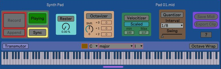 When the Transmutor module is on, it maps the white keys of your keyboard to the chosen Key (C, C#, ..., B), Scale (over 20 choices) and Degree (I-VII). Meanwhile, the black keys of your keyboard are ignored.