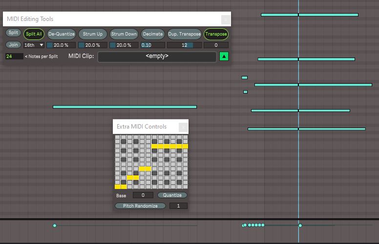 | Description: | Some of the things MZ MIDI Edit can do to MIDI clips: Split notes Join notes De-Quantize Strum Duplicate transpose Randomize pitch Quantize notes to scale More details in link! |