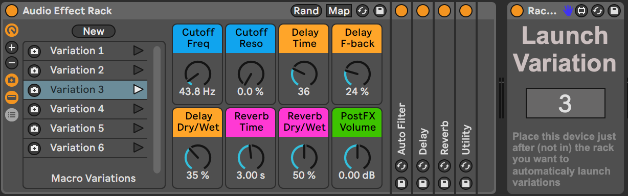 Description: Variations in Racks can not be automatically chosen by an automation. Here's a M4L plugin that resolves this problem.