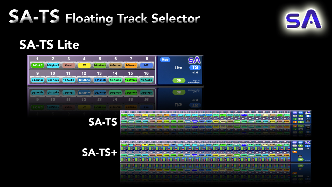 The TS16 Lite in a smaller FREE version of the TS48 and TS48 Plus 48 track floating track selectors. The TS and TS Plus have loads more features to enable easy access to all your tracks, even on very large projects.