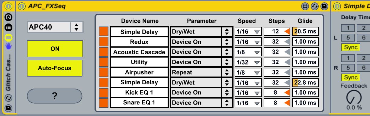| Name | Version: | APC FX Sequencer by Mark Egloff 1.0 |