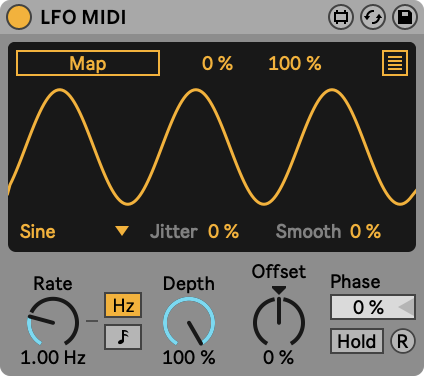 Contrary to the default LFO, this version can live inside MIDI chains, and be saved as part of MIDI Effect Rack presets.