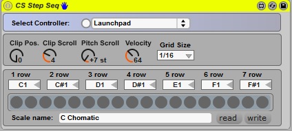 | Description: | The main idea for this device - is to edit currently selected clip on launchpad. To use this device you will need launcpad (no APC 40 support anymore). 1. Drop CS Step Seq on main. 3. Press user2 button on launchpad 2. From now any selected midi clip will be availible for editing on your control surface. Use: 1. Page buttons on launchpad to scroll left/right in clip. Scroll amount set with "Clip Scroll" 2. Leran/view buttons on launchpad to scroll Up/Down in clip. Scroll amount set with "Pitch Scroll" 3. Press arm button on launchpad to update control surface with currently playing position 3. Right buttons on launchpad for velocity. 5. Bottom buttons on launchpad for duration/grid size. When Arm is light on you cant use bottom row. But when Arm is light off bottom row become like right buttons but for durations. 6. You can use any note for any row. 7. If you disable device it will no longer react to user2 button. This allows you to use more then one launchpad device. You can change velocity and duration for any note by pressing on it and choose velocity with right buttons and duration with bottom buttons. If you dont choose velocity or duration, note will be added with default velocity and duration (wich you can change with right and bottom buttons) Updated 04.11.2001 to version 2.0. Bunch of new features, i was test this about one month all work stable. I think that device become more and more complex but i dont wont to write description if no one need it except me. So if you like it or you need it write here |