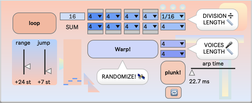 Description: warp chord is a generative chord sequencer. After generating a set of random chords, warp chord can loop these newly discovered dimensions.
