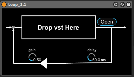 Hi. Ok so it works now. And I think it's a great idea. Especially with a limiter after it. Valhalla Supermassive was quite interesting. If there is some way you can get it to drag from the browser, it would be 100% cooler. I just had a glitch up with the load button LOL. I wanted to use a LFO on supermassive. But I hit the open button and it lfo'd that off n on and I could only escape with FORCE QUIT lmfao. So that's a lil something to consider. If the open button was an open/close so the loaded plugin stayed accessible it would be very good. This could end up being a great experimental tool. I have been messing around with feedback loops in ableton and this is a great alternate way to achieve it.