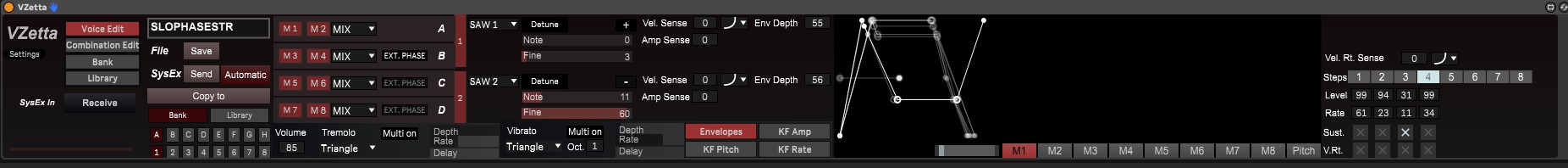| Description: | This is the Beta Version of my VZetta Editor as m4l device. Because of bugs and changes that comes with Live 12 it is not compatible with Live 12. Bugs are reported to Max. I've currently "solved" some issues with Live 12 or implement a workaround. Additionally I've add some nice features. Its currently in Beta testing, i will post a very stable version, if you are interested pls contact me. There is also a a Windows Standalone (very beta) with the same features. Supports: Voice Edit Combination Edit Bank Load / Safe / Receive / Send Library Scanning (minimal but useful for sound browsing) Please send me bugs / issues. That's would be nice! About the used Live Version: because its non profit, an hobby project and for a very rarely used synth the time consuming will be to high to work on other version than that I used for music making. So hope this works for you. There is also a stand alone for windows available I will add more description in the future but currently my new album has the spot :-) Have fun with VZetta. |