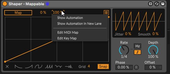 | Description: | Shaper, except the Min and Max ranges for each mapped parameter are themselves automatable and mappable. I'll probably update or do similar for Live 12 modulators if needed. Feel free to offer feedback, suggestions, or ideas. Changelog: 1.1 - Added Y Axis Grid line setting - Increased ranges of X and Y grid lines - Snap works for both Axes now 1.2: - Bugfixes - Independent X and Y snap |