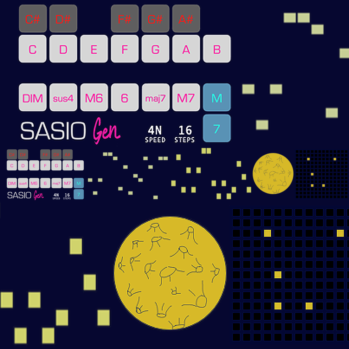 | Description: | his is Chord Generator Max for Live device, inspired by Casio PT-20 chord section. First sequencer controls chord root note, second sequencer controls one of eight chord modifiers, tweak them with the mouse or generate new sequence by clicking the moon. Hook up any AU/VST or polyphonic hardware synth. Choose chord sequence duration, speed of chord steps and save sequences with preset bank. This device does not use any scale logic, so it is different from the majority of other chord generators. Finally let YOU be your harmony censor and let's Jazzz! https://youtu.be/ext-sDW4EiY?si=SNMLh52Nej_HoHRW |