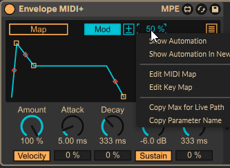 - All Modulation parameters (mod amt, control min and max) are mappable/automatable |