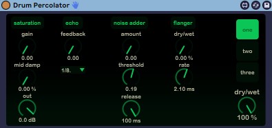 | Description: | Drum Percolator v1.0.0 by Midnight Café (@midnightcafe.bxl) Drum Percolator : add a caffeine boost to your drums ! This multiband multieffect presents a variety of signal processing chains, that are more specifically adapted to a live usage, but can also be used on post processing operations. You'll find 3 saturators for lows, 3 echos for mids, 3 flangers and a noise adder for highs ! This is a plugin for live sets : you cannot tweak every detail of every effect, it's more of a go-to live djing effect, with convenient presets for this usage. Test form : https://docs.google.com/forms/d/e/1FAIpQLSern3GUaMK32eXJR6WS2cjF1Zk_ndofFoBx-PZbk6qUvWFYig/viewform?usp=sf_link |