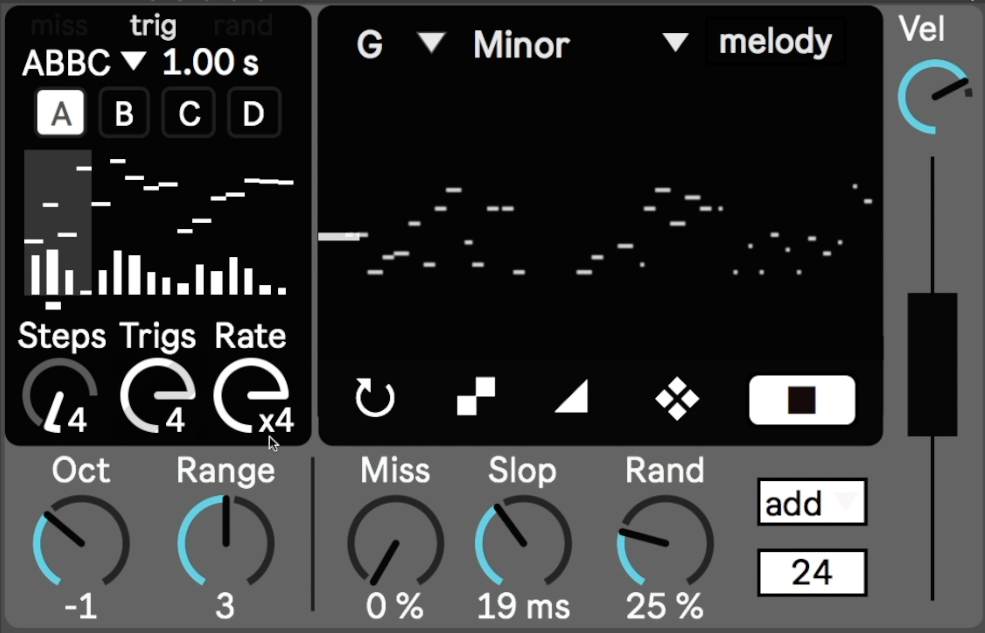 BS1 is a monophonic sequencer that generates a near infinite amount of quantized melodies. inspired by Sting by iftah and Brian Ino. |