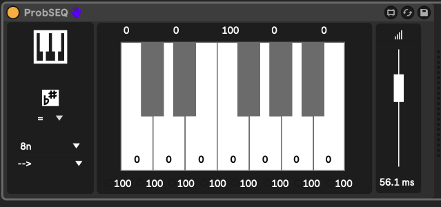 | Description: | 2.1 Added a mode that works with Simpler in Slice Mode. Similar to some of my miditools. Once Simpler is loaded and in Slice mode clicking Sync will sync the device to Simpler and provide a chance slider per slice. Changes made on Simpler should be reflected in the device, if not click Sync. Max can't always load the samples waveform into the device, depending on the file type it may not work. Lives native samples for instance usually won't but your own will. If it doesn't, bouncing the sample to a new audio file and loading that into simpler will fix the issue. The sliders and other setting will work regardless of the waveform being visible, it's purely a cosmetic addition. It works best with things sliced into less than 16 slices, the sliders get a bit small when there's a ton of slices. There's a few bugs on the Max side of things but it seems to work fine within Live from my testing/use. Hope ya dig 2- Remade the ui using V8ui Added ability to choose 2-16 steps instead of a fixed 8 steps 1.2-UI tweak 1.1 -If the note is not in Key chance is set to 0 instead of just being Scale corrected. ProbSEQ is an 8 step sequencer based on the simplified idea of Impromptu ProbKey from VCV Rack . There is a chance amount for Note, Step and Octave and a range for Velocity. Clicking Key will cycle between Key and Drum mode. In Key the device will stay in sync and display the notes for the currently selected scale in Live. Clicking Scale will turn this off and the chromatic scale will be available. The chance for Notes is on each key, step chance is below and octave above. In Drum the first 16 slots of a drum rack are available. Both modes have a slider on the right for Velocity range and a fixed note length. |