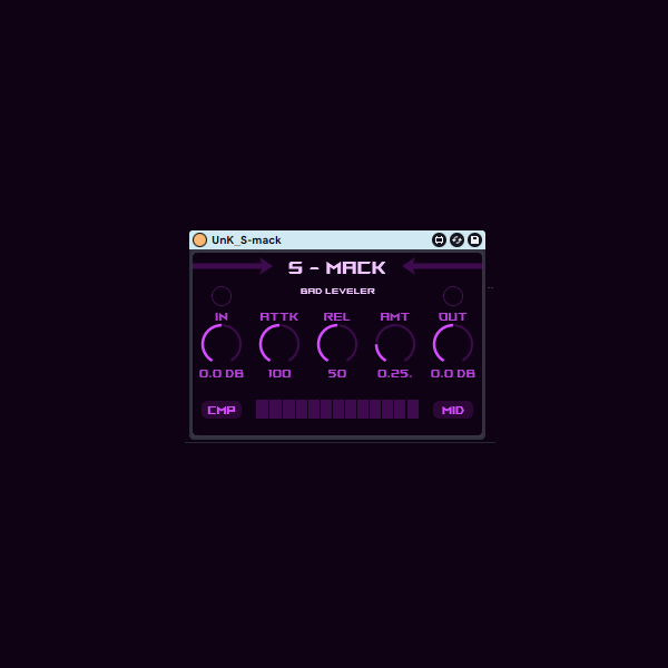 S - Mack is an experimental compressor/expander with a lot of distortion in it. Anyways it offers you a large variety of dynamic processing. From subtle control and color to extremely smashed compression. You can either use it as a distortion tool by driving in and outs.
