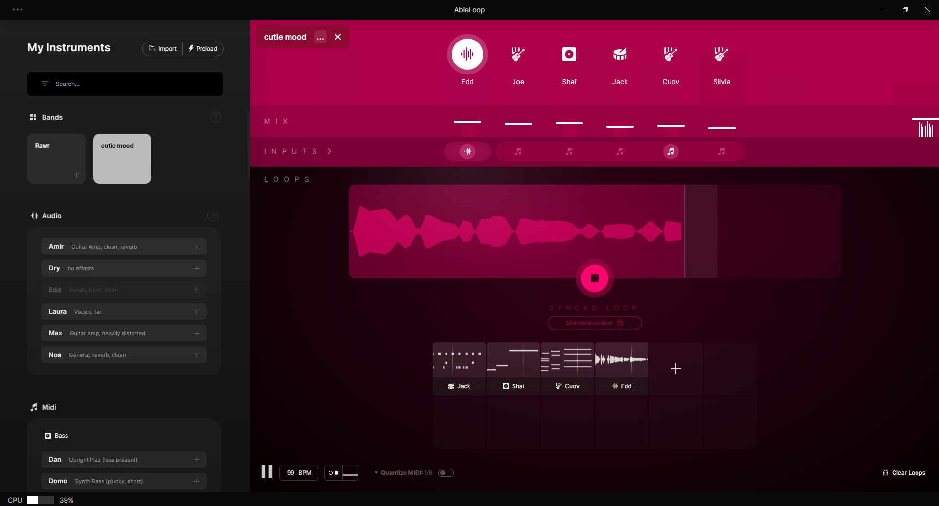 | Description: | Ever want to jam like Marc Rebillet?? AbleLoop is an interface for Abletion Live, that is built for live performance or jamming at the studio. It makes live looping fun, encourages improvisation, and is fully mappable to various setups. Note: This is a Windows Application (exe), it opens up in a seperate windows and controls Ableton via a custom made liveset with a few Max devices and a custom control script (@leolabs\AbletonJS). Features: - Auto BPM (set bpm via first loop) - No Hands Control - Instantly Layer Midi Loops - Fast&Flexible Input Switching - Saved "Bands" of your presets, premixed. - Preload instruments into memory (for quick addition during a session) - Loop Slots independant of tracks, map to illuminated pads (Launchpad X, Push...) - Comes ready with 25+ sampled instruments (from AbleTunes & Brian Funk) - Intuitive interface Tags: tempo follow, loop midi, live looping, Marc Rebillet, AbleLoop, auto BPM, hands-free control, layer midi loops, input switching, saved presets, instrument preload, loop slots, illuminated pads, Launchpad X, Push, sampled instruments, AbleTunes, Brian Funk, MIDI controller mapping, live set optimization, performance tools, real-time looping, dynamic effects switching, MIDI/audio looping, advanced MIDI mapping, quick instrument addition, Max for Live, live performance, jamming tools, studio improvisation, live set, instant bands, session instruments, mapping to pads, pre-mixed bands, looping interface, live improvisation, MIDI loops. |