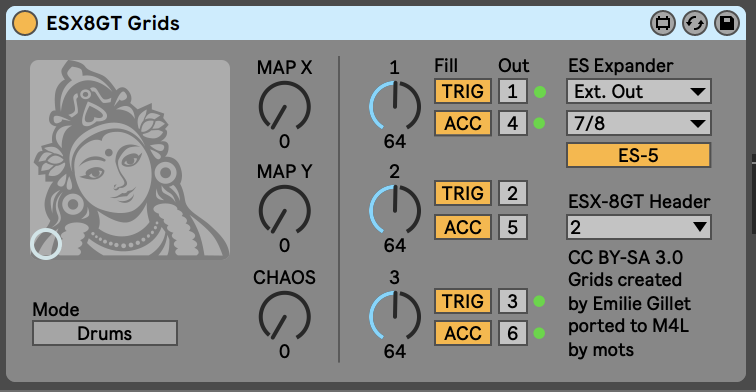 | Description: | Now works with Apple Silicon Grids hacked to work with Expert Sleepers ES-5 & ESX-8GT Expander. You'll need to add the es*encoder~ externals to Max for these to work. https://www.expert-sleepers.co.uk/downloads.html On a Mac the location for externals: Users/Shared/Max 8/Library/ If using with an ES8/9 as an aggregate device turn off DRIFT CORRECTION Some history below from mots original device: https://maxforlive.com/library/device/2518/grids-for-max-for-live Grids (http://mutable-instruments.net/modules/grids) is a topographic drum sequencer module from Mutable Instruments. This device is a port of the Eurorack version to M4L. Most of the original manual ( http://mutable-instruments.net/modules/grids/manual ) applies, with exception to of course cv inputs, clock in, tap tempo and such thing which do not make sense in a DAW. Make sure to automate the parameters with automation or with a max4live LFO, that is where the fun begins ! |