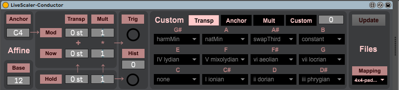 | Description: | LiveScaler allows to change in live the scale of all the MIDI tracks of a session at the same time. Basically, LiveScaler maps notes to other notes, and does so for all the instruments of the session. For instance, one can assign to all twelve semi-tone only the notes of the major scale and do that for every octave. This allows to for any song and any number of tracks, using a MIDI controller : - transpose the whole song - switch from major to minor - use a whole tone scale - to quantize to some mode custom mode - modulate temporarily in another tonality - and much more ! Github repository :https://github.com/AliceRixte/LiveScaler Manual : https://github.com/AliceRixte/LiveScaler/wiki Youtube tutorial : https://www.youtube.com/watch?v=xjDazp8kIT4&list=PLeC9--5OZZeCat9jd31Gyd3DyAMXrDh6K Research article (in french) : https://hal.science/hal-04386347v1 |