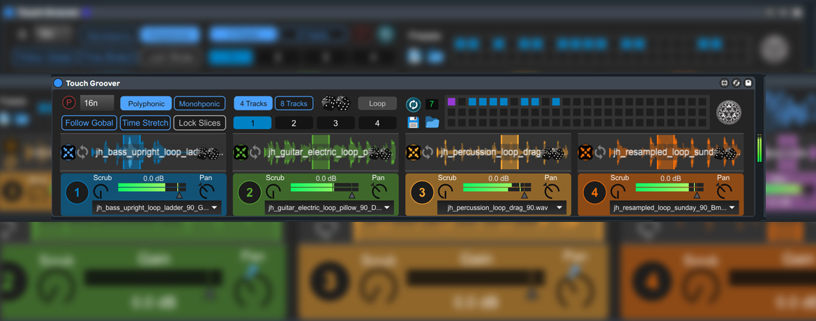 | Description: | Touch Groover is one of my favorites because of its simplicity and effectiveness. It's a simple groove sampler and slicer to create beats straightforward in a playful manner. You can’t really do anything wrong. The concept is similar to my "Dial Beats" device but more convenient, more simple, more focused, "Dial Beats for Dummies", so to say. You can use it as alternative for Live’s drum rack. If you use a touch pad or a touchs creen, you can play the slices by hand like drum pads. Otherwise use the "Scrub" dial, the mouse, or the numbers 1-8 on your keyboard. Note: The device must be focused for that, just click on the device background and it should work. Your can create all kind of beats, fast Aphex Twin-like beats, textures, ambient pads, experimental stuff and more. Or use it to create drum kits and song ideas from sample packs. Drop your folders into the drop zone, press the dice to randomize them as you like and just groove! Then save your combinations as presets and switch between them via MIDI control. TIPS & TRICKS: The device is designed for rhythmic, percussive samples, but it can also produce interesting results using the "wrong" material. Experiment with speed and time stretch. In combination with Live's global tempo you can create very interesting beats. MAIN FEATURES: - Easy to play, perfect for touchs creen and touch pad - Visual play experience, you see what you play - Playable via mouse, knobs, keyboard or fingertips - Sample folder quick load and random file selection - 4 or 8 playlist "tracks" - Input quantization and time stretching - Polyphonic and monophonic mode - Simple and straightforward interface - A playful exterior and compact design Criticism, bug reports, complaints, suggestions, tips, questions or whatever are always welcome! I am grateful for any review and support! -> You need help? Contact me: metamagicum@gmx.de Or post a comment: https://maxforlive.com/profile/user/Metamagicum Have a nice groove! |