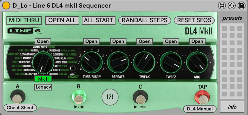 | Description: | A MIDI sequencer for the Line 6 DL4 mkII delay pedal. |