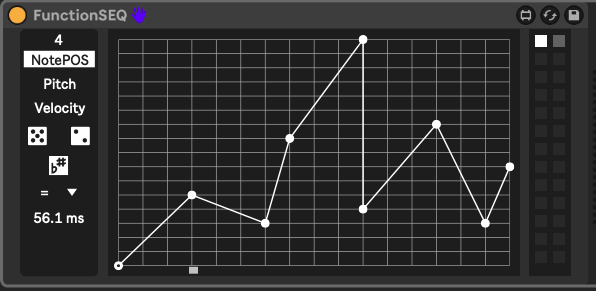 | Description: | 1.1 Added "Clear" button for the function FunctionSEQ is a sequencer that uses a graph to step through a fixed amount of note/velocity pairs. You can set the number of bars it'll take to complete the sequence then draw in a graph to determine what notes are palyed when. It has note randomization/scrambling scale syncing with Live and the ability to save and recall presets. Nothing super fancy but it's fun. |