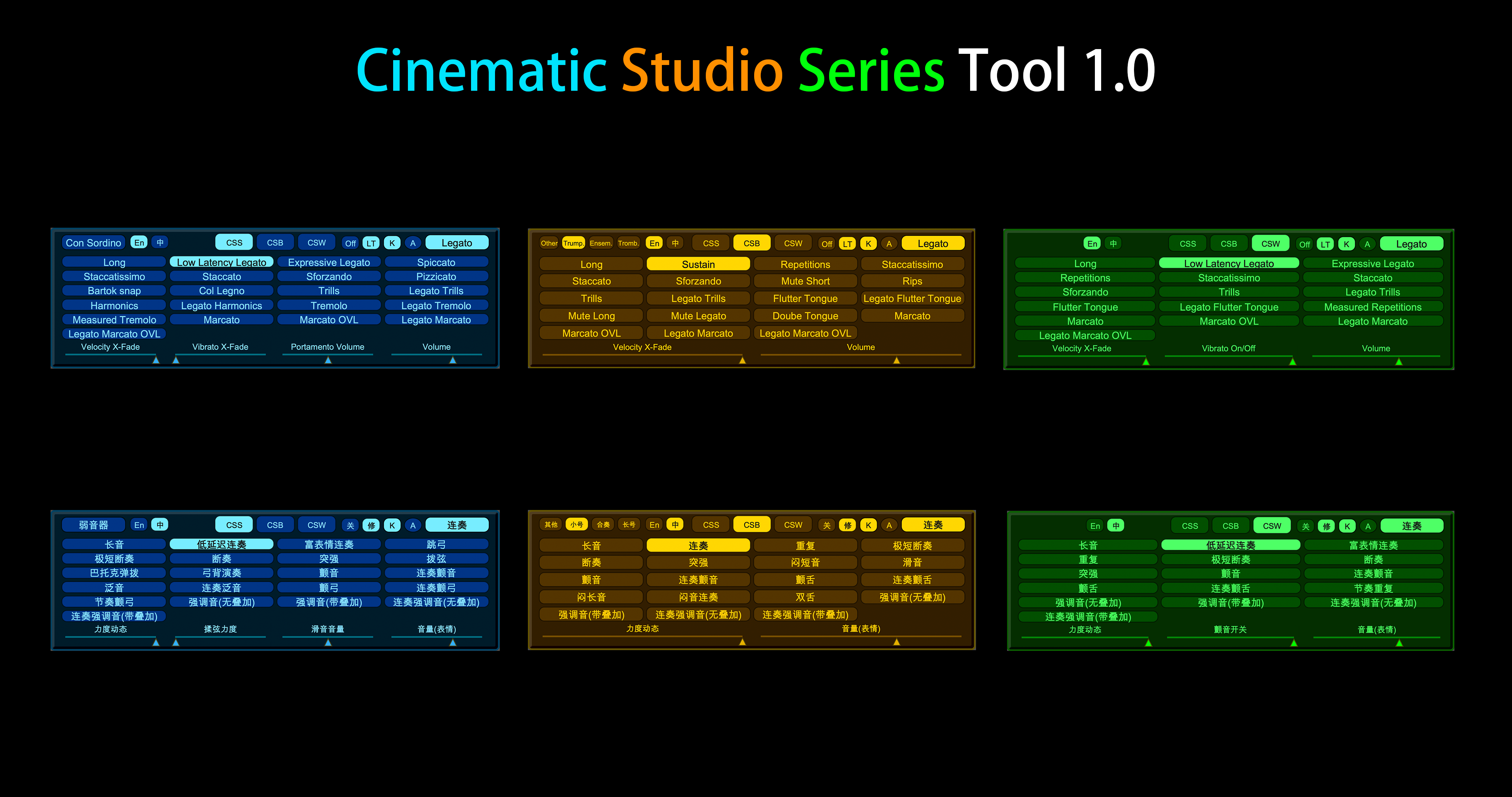 | Description: | This is a plugin made for Ableton Live using M4L, designed for Kontakt instrument libraries released by Cinematic Studio, including Cinematic Studio Strings/Cinematic Studio Strings Solo/Cinematic Studio Brass/Cinematic Studio Woodwinds. It features articulations control, delay issue fixes, and relevant CC control for the respective instruments, making it easier to use these libraries in Ableton Live without worrying about their sounding latency problems. Features: 1. Use track automation to fully control the articulations and all associated CC controller functions of Kontakt instrument libraries released by Cinematic Studio, including Cinematic Studio Strings/Cinematic Studio Strings Solo/Cinematic Studio Brass/Cinematic Studio Woodwinds. 2. Automatically fix the delay issues of the instruments, so you no longer need to worry about their delay problems and can directly input notes aligned to the piano roll grid. 3. One plugin can control different instruments; you just need to select the corresponding instrument at the top of the plugin. 这是一个为Ableton Live使用M4L制作的插件,用于Cinematic Studio发布的Kontakt音色库包括Cinematic Studio Strings/Cinematic Studio Strings Solo/Cinematic Studio Brass/Cinematic Studio Woodwinds,具有演奏技法控制,延迟问题修复以及对应乐器的相关CC控制,它可以让您在Ableton Live使用这些音色库时变得更加方便,也无需再考虑它们的延迟问题。 特点: 1. 使用轨道自动化完全控制由Cinematic Studio发布的Kontakt音色库包括Cinematic Studio Strings/Cinematic Studio Strings Solo/Cinematic Studio Brass/Cinematic Studio Woodwinds的演奏技法以及所有关联的CC控制器功能; 2. 自动修复乐器的延迟问题,您不再需要考虑它的延迟问题,可以直接对齐钢琴卷帘的网格写入音符; 3. 一个插件可以控制不同的乐器,您只需在插件顶部选择对应的乐器即可。 |