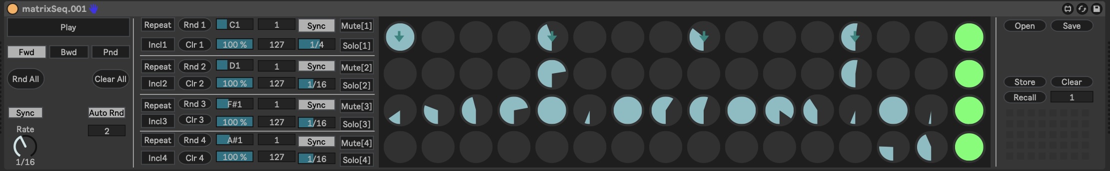 | Description: | This is a max for live device that allows you to sequence 4 tracks using the matrix object. - Auto randomiser (you can exclude or include each track from this function) - Mute / Solo / Randomiser per track - You can save and open presets This is a free product but you can support my work by following, it's free and you'll be happy : https://www.instagram.com/ctrlz.live/ |