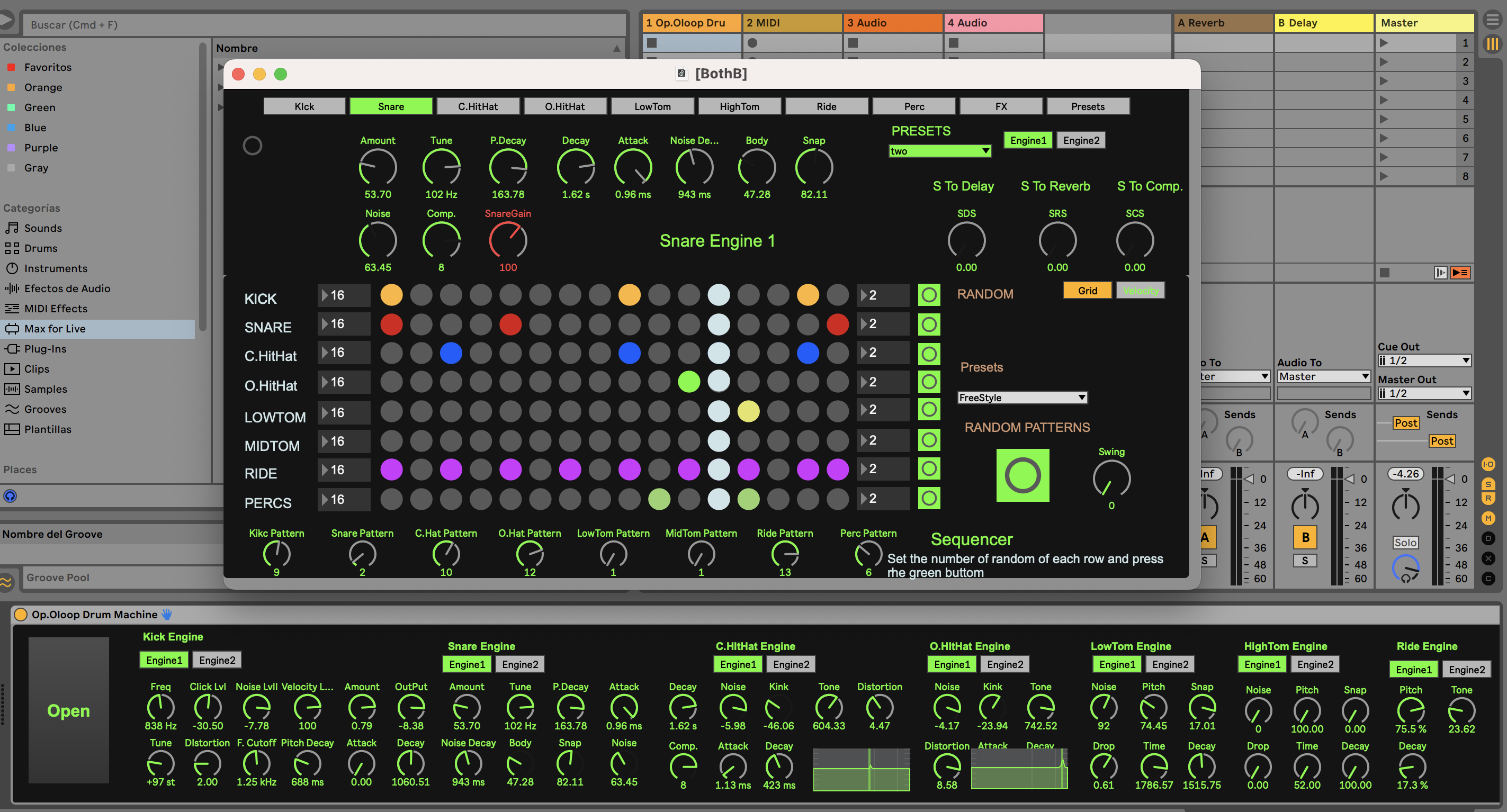 | Description: | This Drum Machine has 8 instruments, and has two synthesis per instrument. All the sound engines are to emulate the analog sounds Now, this is the fun part, you can randomize by the numbers of the number box aside of the grid, when you play random it not only randomize the grid, it also randomize the velocity. You can also randomize the pre patterns that are included in the Op.Oloop Drum Machine, just by clicking the big green bottom under “Random Patters”, on where you can choose the style of the pattern. Buy: https://ko-fi.com/s/589c7286db It is also possible to save your own patterns creations, just clicking the velocity tab it will show you a big box where you can save the current pattern by pulsing shift + click on the square selected. Then you can sequencer the saved patterns by midi notes, starting by C2 to D#3 Of course in the future of this Drum Machine will be a lot of new features. See: https://www.youtube.com/watch?v=F11QXjJUjcE |