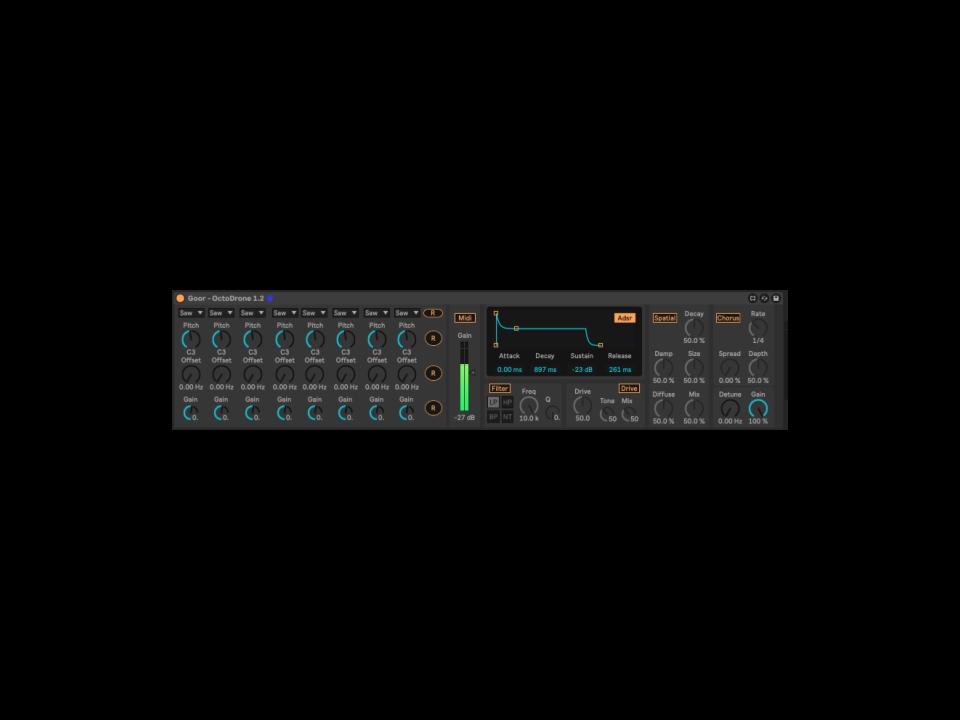 Description: | Drone generator, disable adsr for free sound or control it with it!!! Wonderful random parameters!!!! |