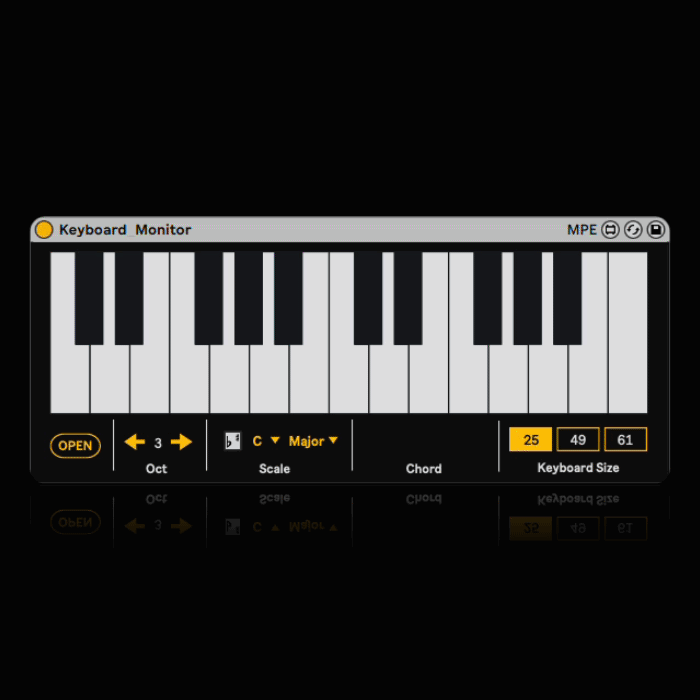 | Description: | Keyboard Monitor by Side Brain & OCH Utility Max device designed to enhance the teaching and learning experience for keyboard and MIDI instrument players. Features: - Dynamic Sizing up to 88 keys - Pop Up Window - Individual Note Labeling - Chord Detector - Scale Visualizer - Live 12 Key Awareness - Mod Wheel, Pitch Bend and Sustain Pedal Visualizers Changelog: 1.1.2 - fix label colors to be compatible with Live 12 and 11's dark themes 1.1.1 - compatible with Live 11 with bundle Max - several chord detector improvements 1.1.0 - New chord detection algorithm - New 88 keys keyboard size - New Big Keyboard Zoom Controls 1.0.1 - Fixed octave displacement on big keyboard - Fixed misalignments of Oct arrows on both small and big keyboard - Fixed dynamic colors of separators, sustain pedal, and key awareness toggle - Added sustain pedal to small keyboard - Moved version number on small keyboard to credits logo reveal text area 1.0.0 - Official Release |