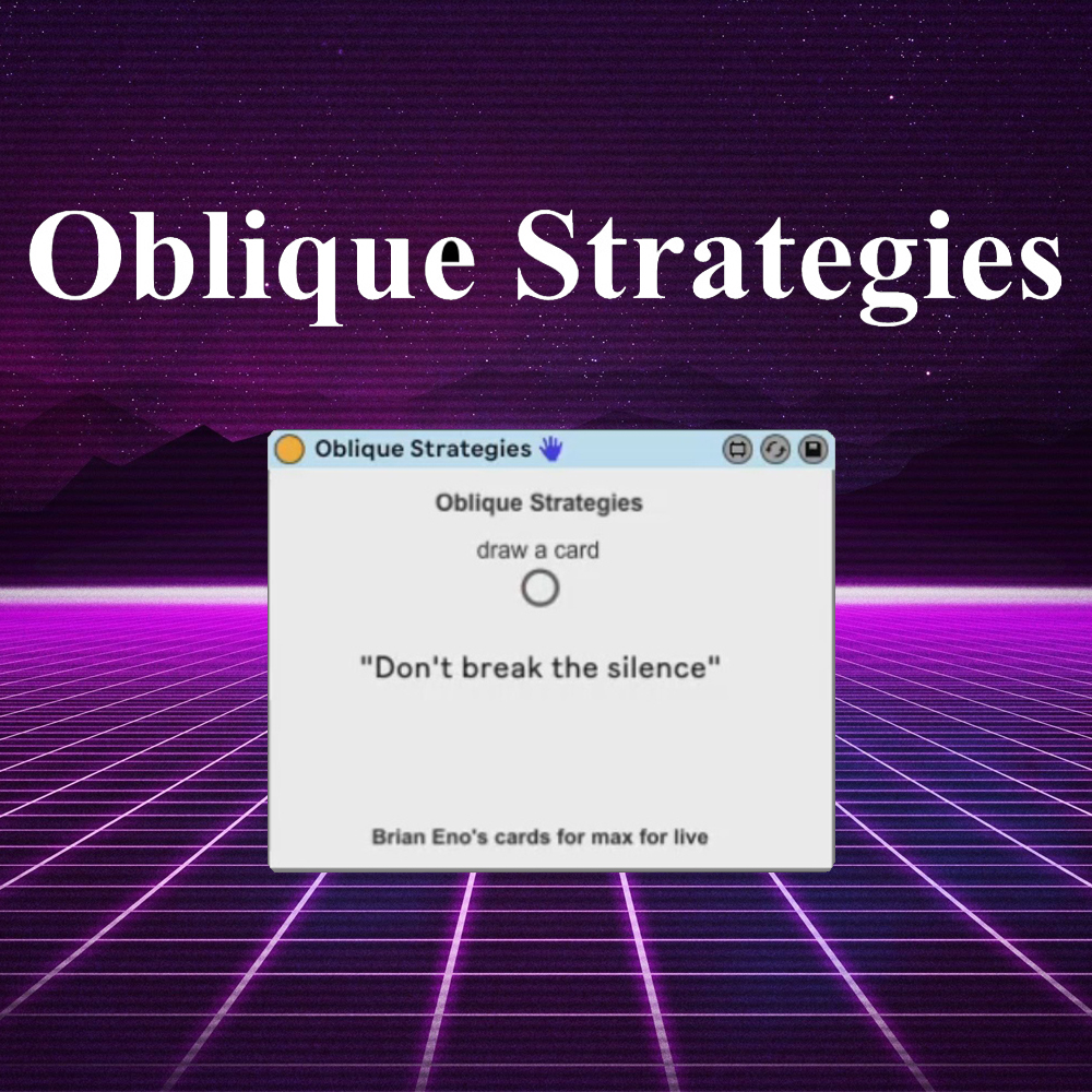 | Description: | Oblique Strategies [Max for Live] (subtitled Over One Hundred Worthwhile Dilemmas) is originally a deck of printed cards created by Brian Eno and Peter Schmidt and first published in 1975. Each card offers an aphorism intended to help artists (particularly musicians) break creative blocks by encouraging lateral thinking. free download on https://www.remodevicocomposer.eu/maxforlive/ Support Channel and download my music on https://remodevico.bandcamp.com/ totally free, consider supporting my music, Subscribe to the YouTube channel, follow me on Spotify or support this download with a free donation. Thank you |