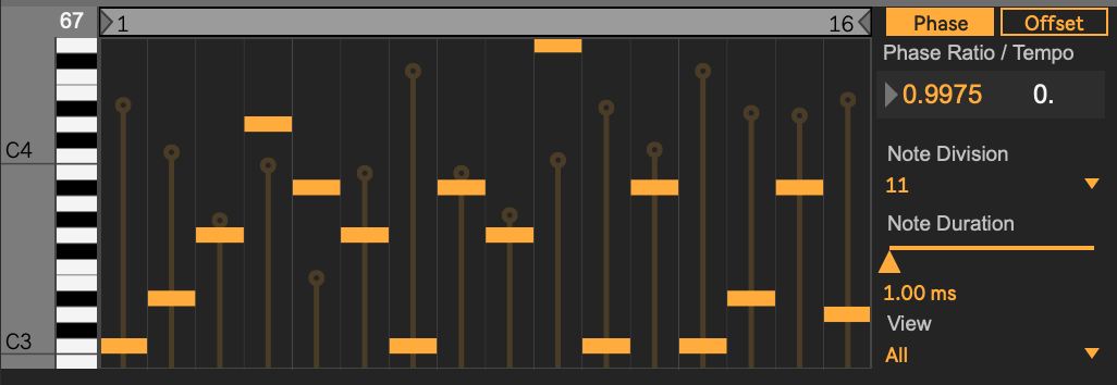 | Description: | In homage to Steve Reich and his work "Piano phase", a small midi generator which allows you to explore phase shift. Have fun! |