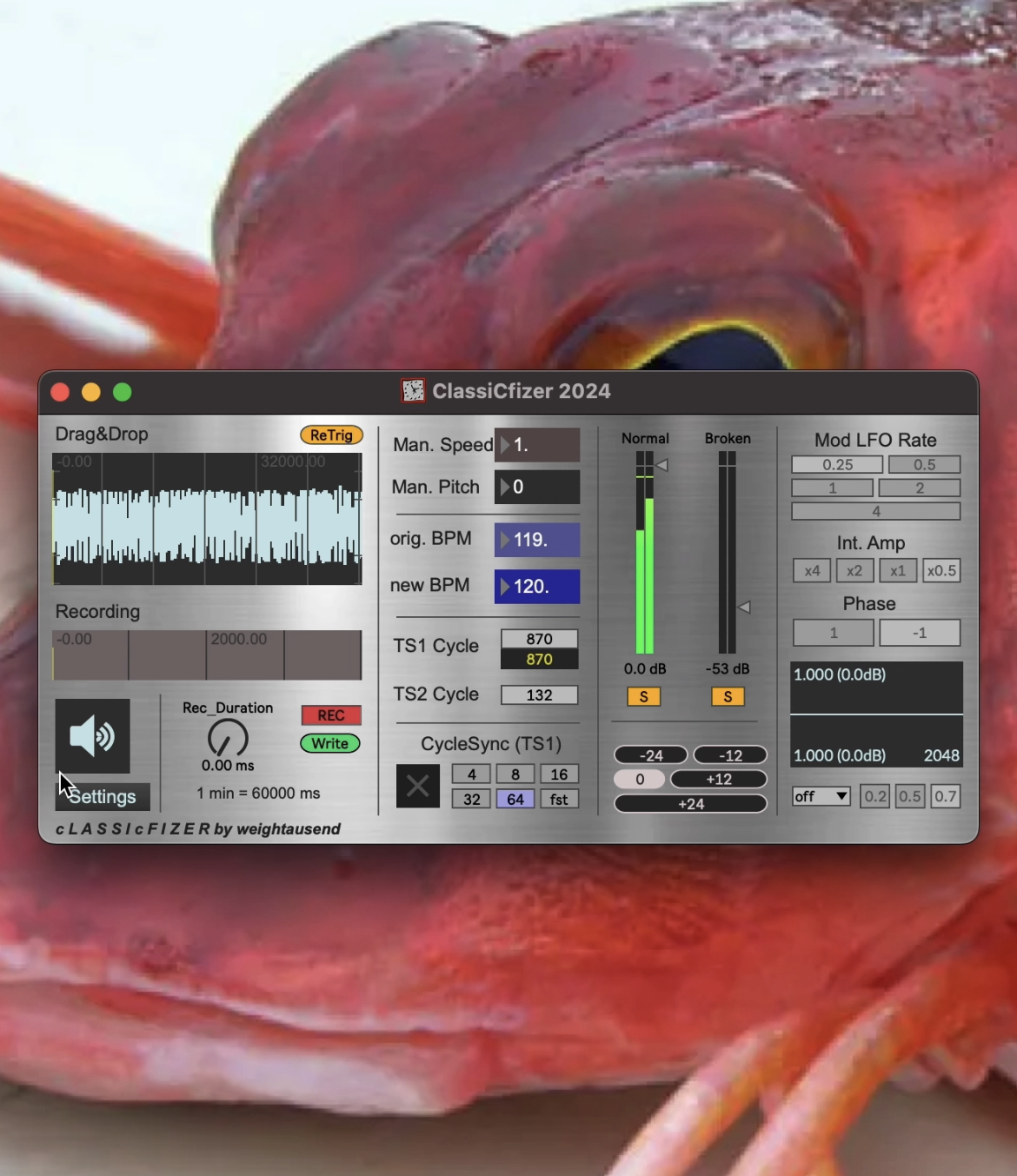 | Description: | Note: !!!THIS IS A MacOSX STANDALONE!!! It works without Ableton. A m4l based on this will eventually come out. ClassiCfizer is an experimental timestretch tool inspired by the classic AKAI time stretching algorithm. It’s developed in MaxMSP/Gen and runs as a standalone on MacOSX. With this tool you can achieve a classic jungle era sound, even without tuning any parameters. Just drop in any sound of your choice, re-record it, and save it. This device contains some unique features too: • An algorithm that calculates the stretch speed based on the desired new BPM rate. • The CycleFrequency (or rate), which can be synced to beat subdivisions, allowing for powerful stuttering effects and rhythmic variations. • A BPM-synced LFO with three different waveforms that modulates the Speed parameter, opening up greater rhythmic experimentation and strange effects. Additionally, this device features two stereo timestretching algorithms that can be mixed together or used separately: • A "normal" timestretch algorithm optimized in Gen. • A "broken" timestretch algorithm derived from a failed port of a Pure Data patch. This device allows you to set a recording time and then record a session from a sample of your choice, which can then be saved to your Mac. |