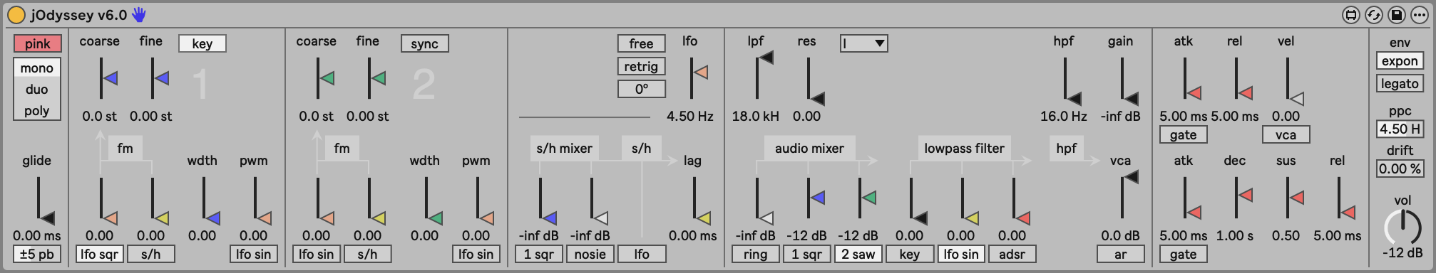 | Description: | my favorite synthesizer ever. the ARP Odyssey :P been working on this for like 2 years. used this all over Excelsior special thanks to Surreal Machines moog filter, ess zdf-svf, airwindows capacitor2, Tale oscillators, Graham Wakefield hardsync. updated poly mode now, i think sustain is broken cant remember jMedia 2025 |