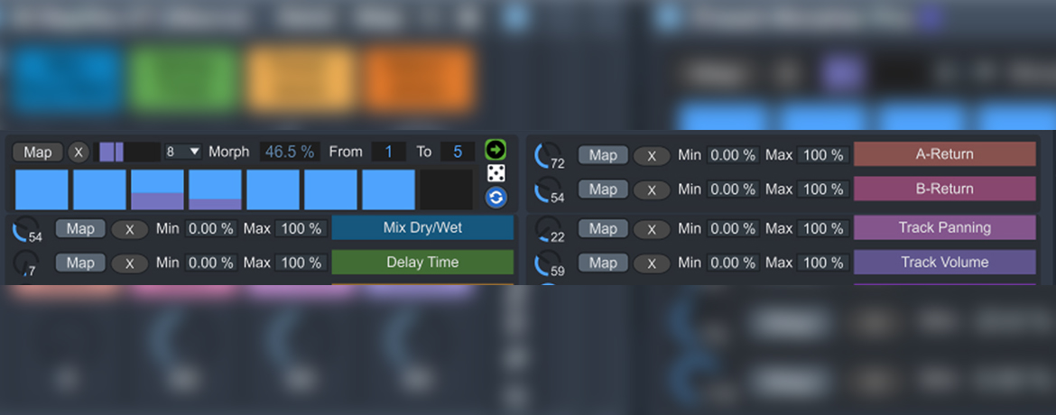 | Description: | Preset Morpher Pro is a handy macro mapper where you can morph / interpolate between 2 or more presets. Live has the "Macro Variation" feature where you can create macro variations, but there there is unfortunately no morphing functionality. This device fixes that. Since Live 12 it's possible to interpolate between several presets in a row. See below for more information. Presets are now saved within the Live Set, you can use as many devices as you want. MAIN FEATURES (Pro Version): - Auto mapping: Just start mapping and click all parameters you want to map one by one to automatically map them without having to press "Map" again and again, which instantly causes headache... - Preset object update: Stepless and smooth transition between min and max preset number (only Live 12 or higher, earlier versions no effect) - Use several devices in one Live Set on different tracks (unique object id's, persistent auto save - no save file needed anymore) - Select the preset slots visible in the device: 2, 4, 6, 8, 12, 16 or 50 (more eye-friendly) - Morph "From" "To" simplified: First preset is set manual, target preset is set by clicking on the desired slot - Minor bug fixes, optimisations and visual beautifications which are not included in the free version Happy morphing! Preset Morpher Pro: 2.2 tested on Windows 10 Tested Max Version: 8.5.6 / 9.0.3 Tested Ableton Live Version: 11.2.0 / 12.1.0 |