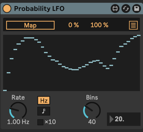 | Description: | It’s an LFO that generates values according to a user-defined probability distribution. A multislider object with adjustable bins is used: • Each bin’s X-position specifies the potential modulation value, • Each bin’s Y-position sets the probability of that value being chosen. Please leave a comment for ideas and requests. |