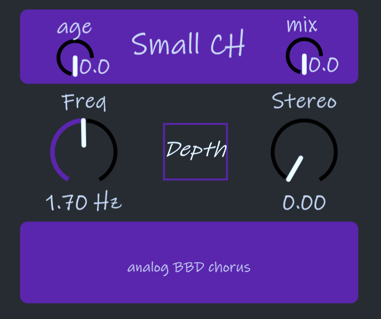 Being a digital reproduction, I have also made it more modifiable and usable in different ways, adding a Mix knob, a Stereo knob and an Age knob that modifies the tone of the unit to the classic Depth and Rate controls.
