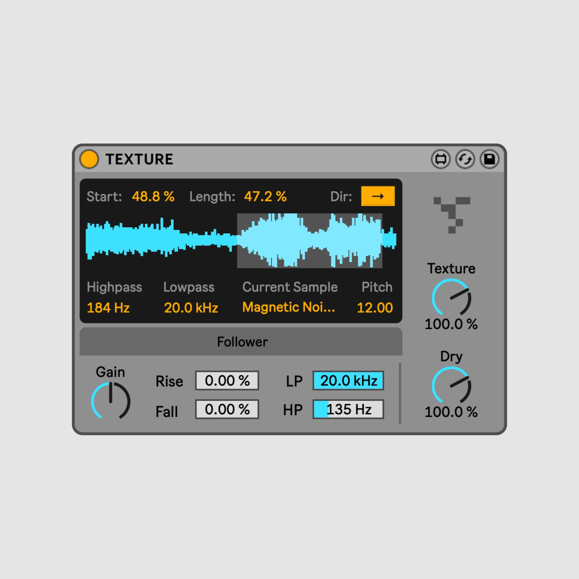 | Description: | TEXTURE is an audio effect that adds depth and character to any sound by applying the sonic quality of a ‘texture’ sample to the dynamics of the input. Use it to give any sound a rich, organic tone. |
