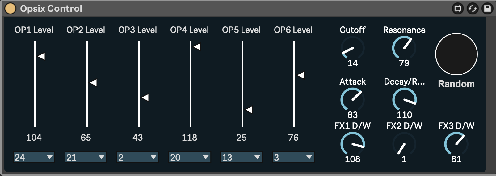 | Description: | Simple editor to control the most used controls on the Opsix. includes a randomize button for happy accidents. |